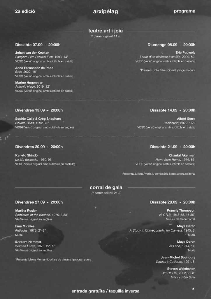 El cicle de cinema Arxipèlag és una iniciativa que va néixer l’estiu de 2022 a Cadaqués entre un grup d’amics amants del cinema. La programació del cicle s’inspira en una de les condicions més característiques de Cadaqués, l’aïllament.